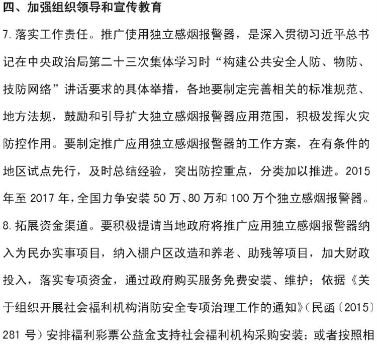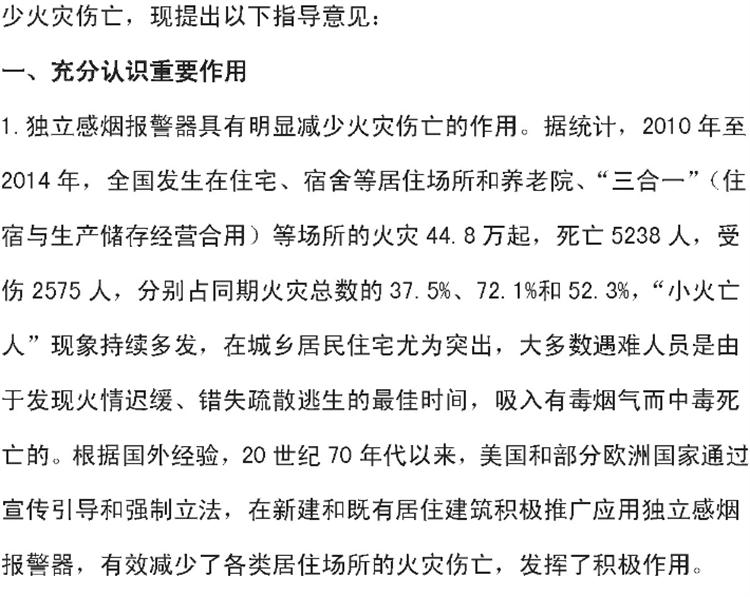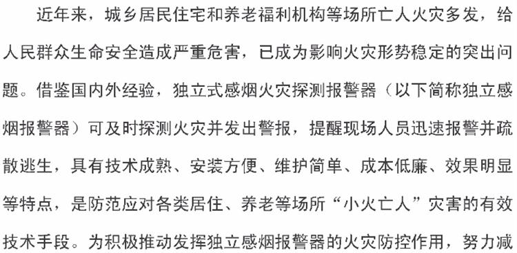 【獨(dú)立式煙感】火災(zāi)探測(cè)報(bào)警器六部委支持文件